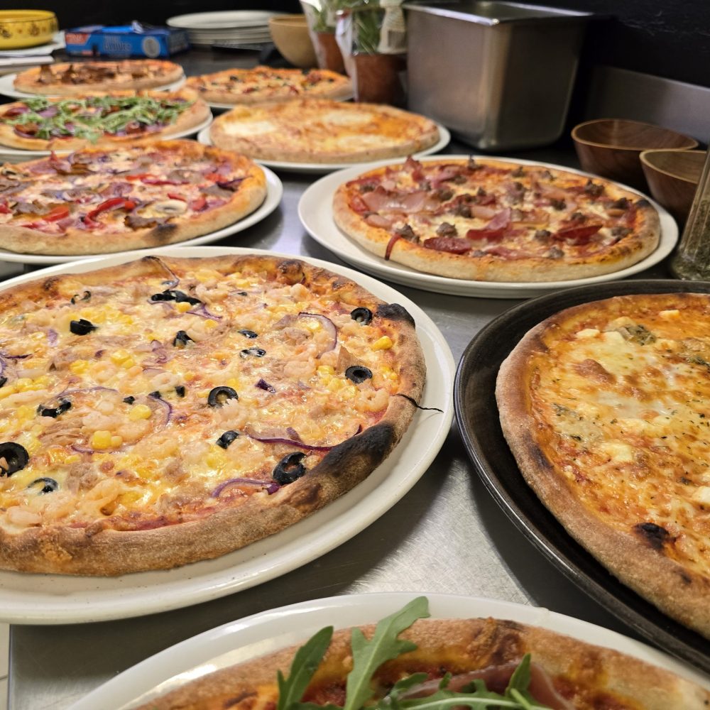 Vores pizzaer bages med kærlighed på en bund smurt med krydret tomatsauce og toppet med velsmagende ost. Vælg mellem et bredt udvalg af fyld – fra skinke, pepperoni og bacon til oksekød, kebab, kylling, parmaskinke, tun, rejer og meget mere. Sammensæt din favorit eller prøv noget nyt.